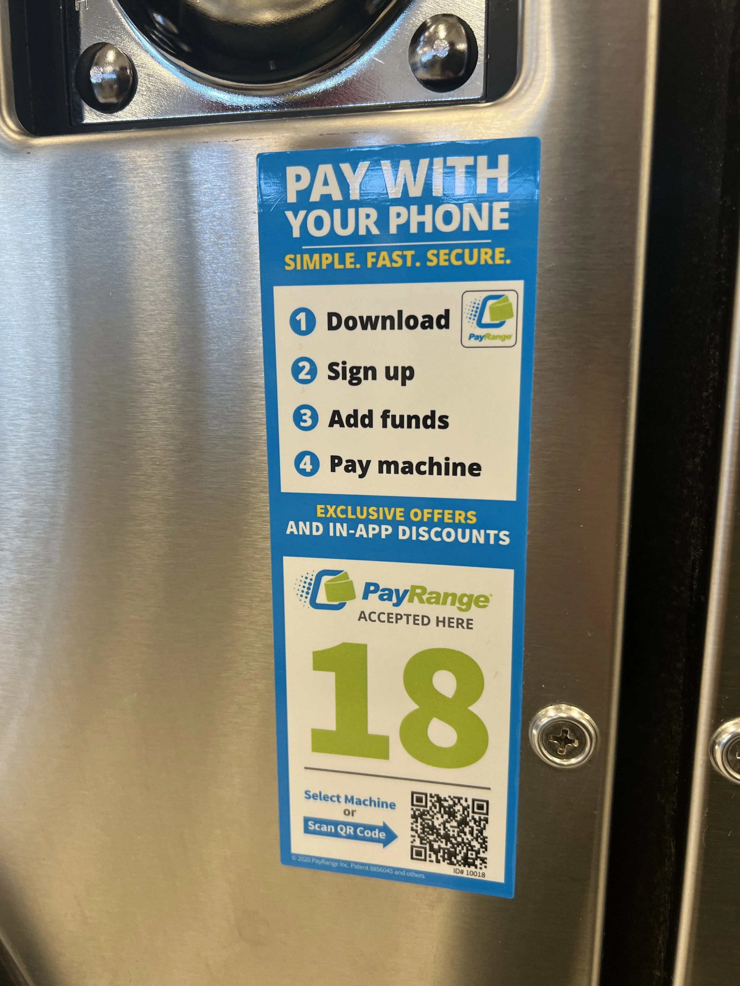 Self service machines operated by coin or PayRange Mobile App